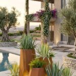 עציצים ואדניות ממתכת קורטן בגימור חלודה