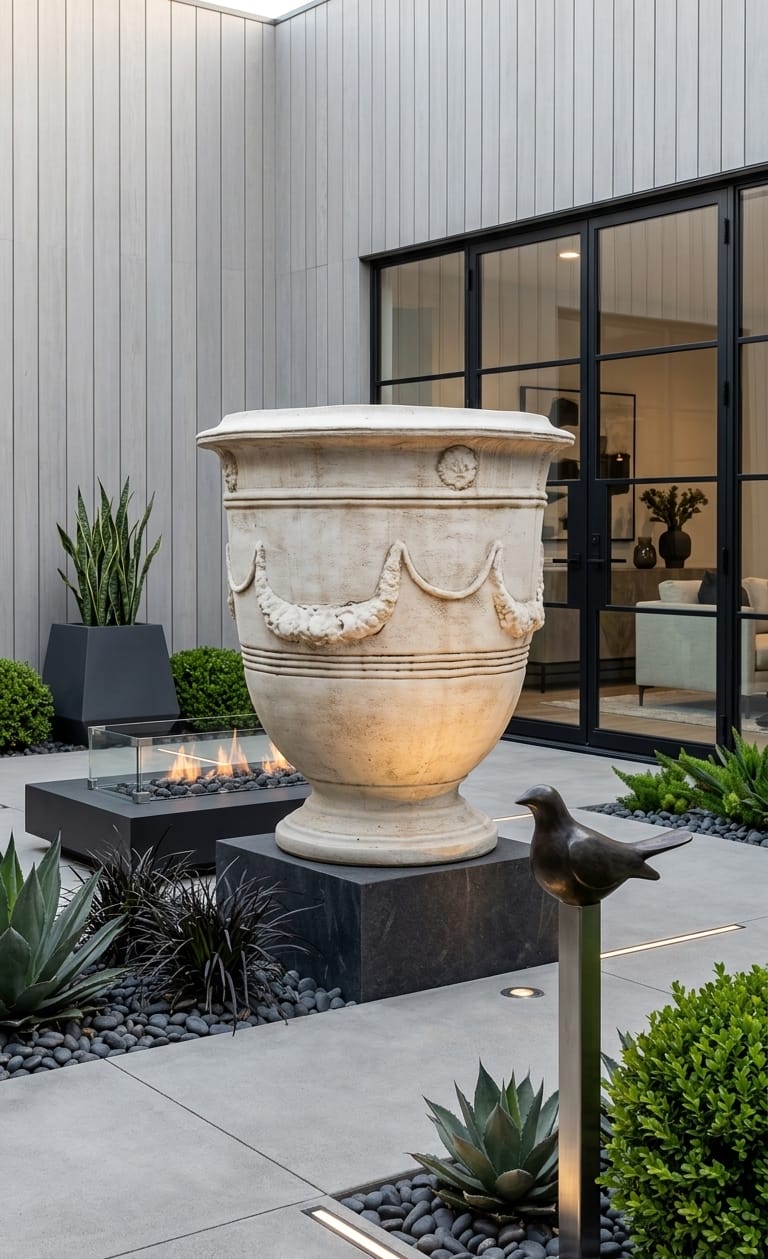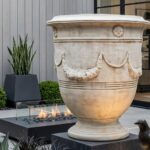 כד דקורטיבי גדול בסגנון קלאסי – כד אבן מפוסל בסגנון עתיק מהעולם היווני-רומי.