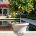 כד מעוצב עשוי פייברסטון, כדים המתאפיינים במראה אבן טבעי אך קלי משקל ועמידים במזג האוויר הישראלי.