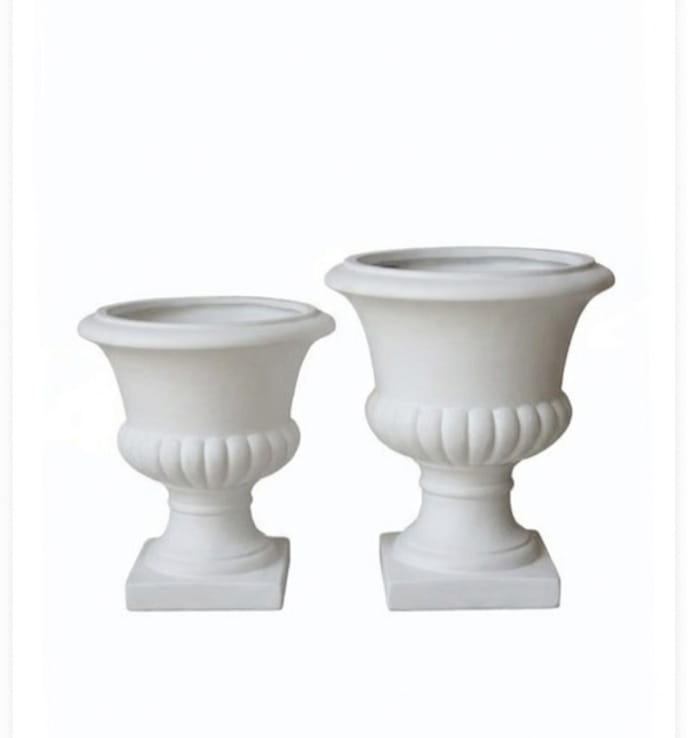 כד בצבע לבן בצורת גביע מעוטר עומד על רגל עשוי פייברסטון ועמיד במזג האוויר הישראלי. מצויין לשתילת עציצים גדולים, ניתן להניחו בגינת הגג או במרפסת כמו גם בגינה ,בחצר או בכניסה לבית.