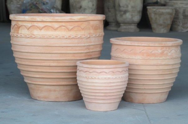 סט 3 יח' 55/50+42/38+29/26 ס"מ עציצי חרס איטלקיים מטרקוטה באיכות גבוהה המעניקים מראה טבעי ויפה, נשמר לאורך זמן עמיד במזג האוויר הישראלי ואינו מצריך תחזוקה שוטפת.