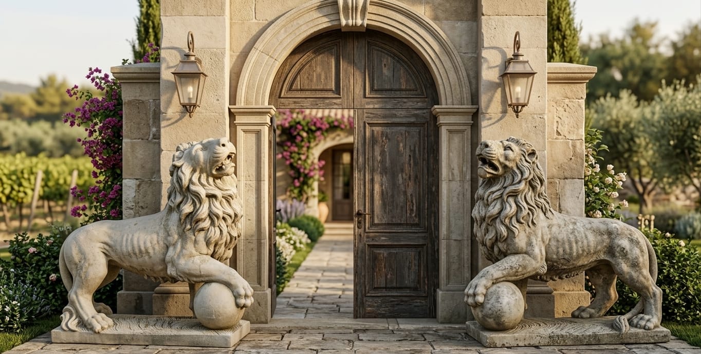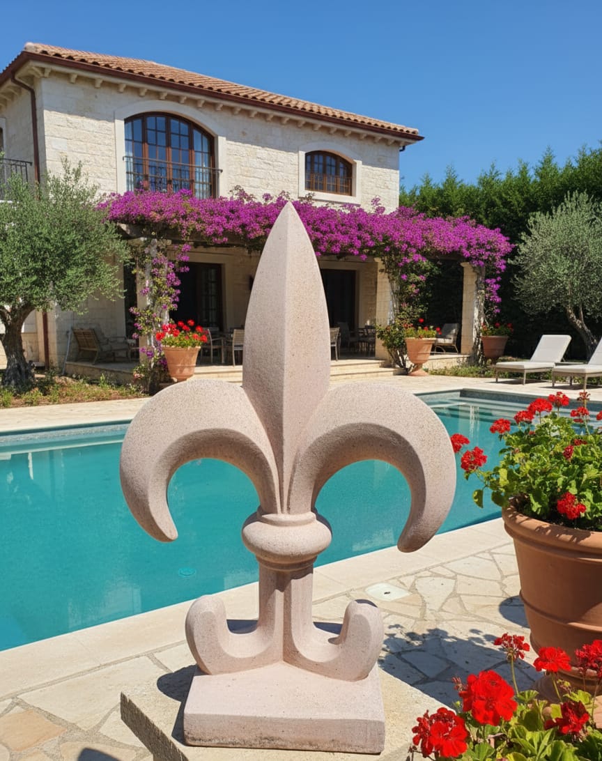 פסל בסגנון קלאסי־דקורטיבי בצורת פלר-דה-ליס (Fleur-de-lis) – סמל המזוהה עם מלוכה, אצילות ואירופה הקלאסית.