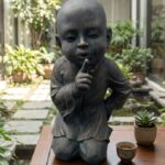 פסל נזיר בודהה צעיר , הומריסטי ומשרה שלווה על הסביבה.