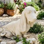 הפסל שבתמונה הוא דמות כלב בסגנון קלאסי ונעים לעין, המזכירה כלב מסוג באסט האונד בזכות האוזניים הארוכות והנפולות.