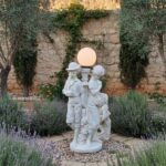 פסל מנורה איטלקי של ילד וילדה משיש גרוס עם צמנט