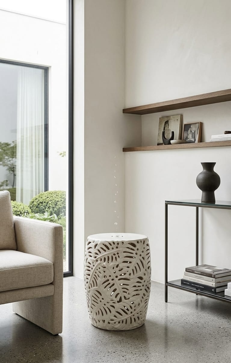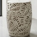 אקססוריז שרפרף / כיסא / שולחן צד קרמי צבע לבן עם דפוס עלים חלול.