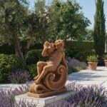 פסל אבן איטלקי ילד נשען על עיטור גליפוטי (Putto) בסגנון הבארו.